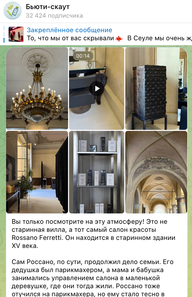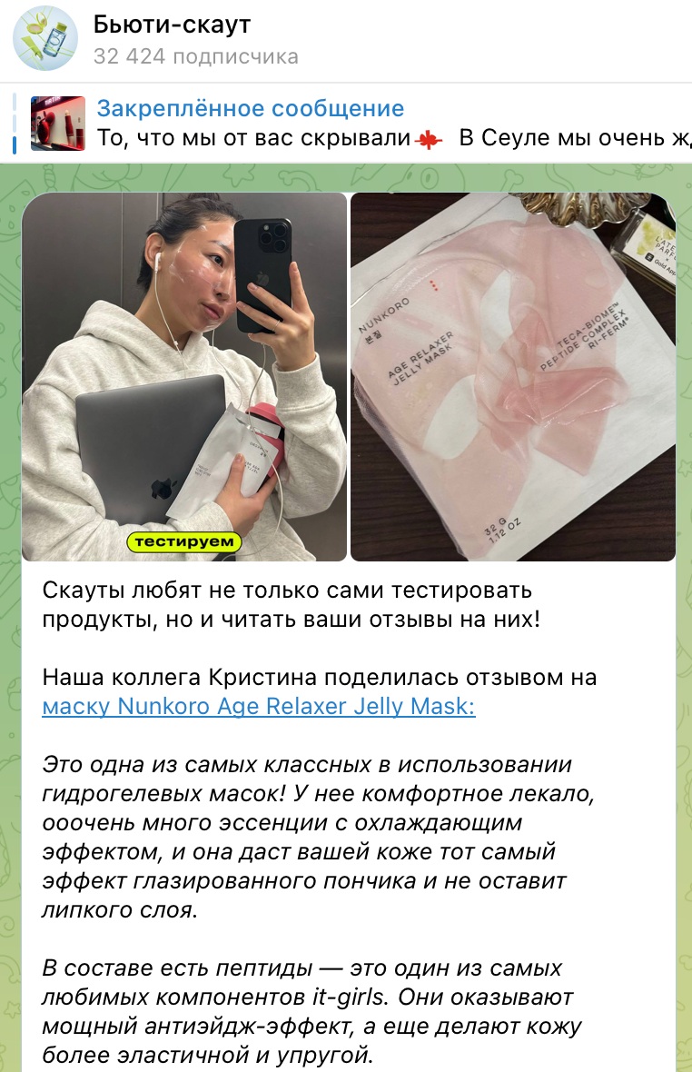 Ein separater Kanal des Teams von Goldenen Apfel, in dem verschiedene Beauty-Produkte getestet werden