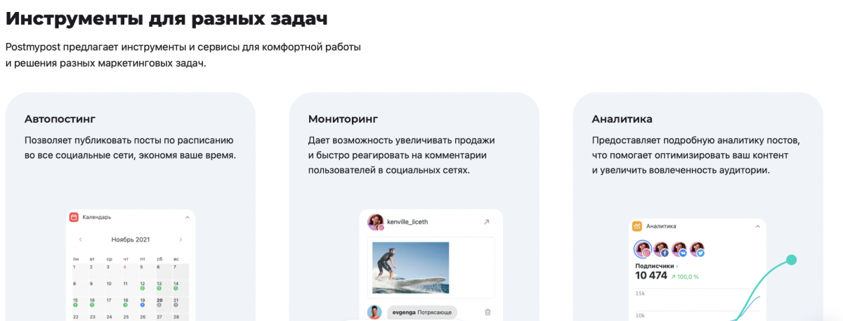 Häufige Veröffentlichungen, schnelle Iterationen, Format-Tests und gleichzeitige Veröffentlichungen in mehreren Netzwerken – das ist bereits keine Option mehr, sondern eine Notwendigkeit. Postmypost ermöglicht es, Content stapelweise hochzuladen, die automatische Veröffentlichung zu Spitzenzeiten zu kontrollieren, die Zusammenarbeit mit dem Team in einem Fenster zu koordinieren und zu sehen, welche Formate in allen Plattformen gleichzeitig „funktionieren“. So bleibt mehr Zeit für Kreativität und weniger für Routine.