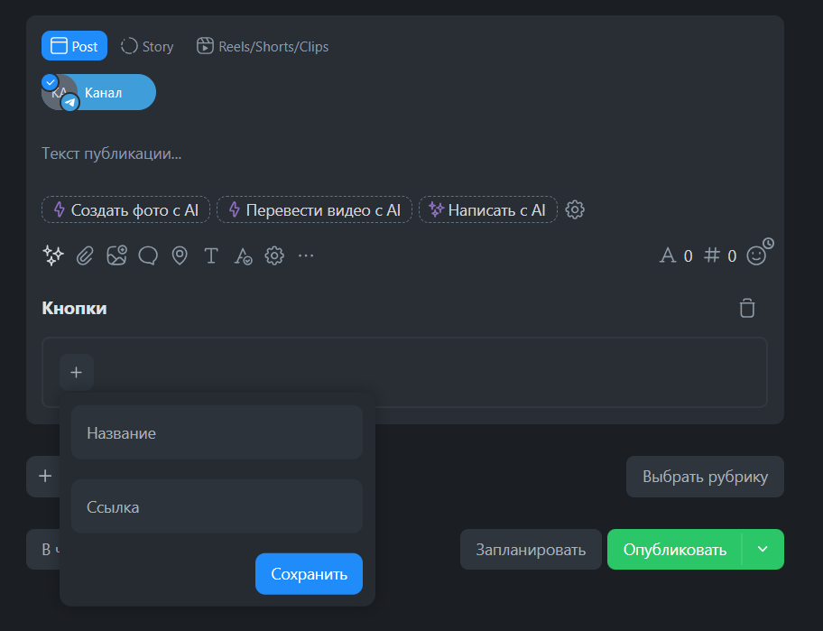 Лайфхак: қызметтің ішінде AI-ассистентті қолданыңыз. Нейросетпен чатта «SMM бойынша онлайн-курсты сатуға арналған 5 батырма нұсқасын ұсыныңыз» деп жазыңыз — және дайын мәтіндер мен эмодзилерді алыңыз.