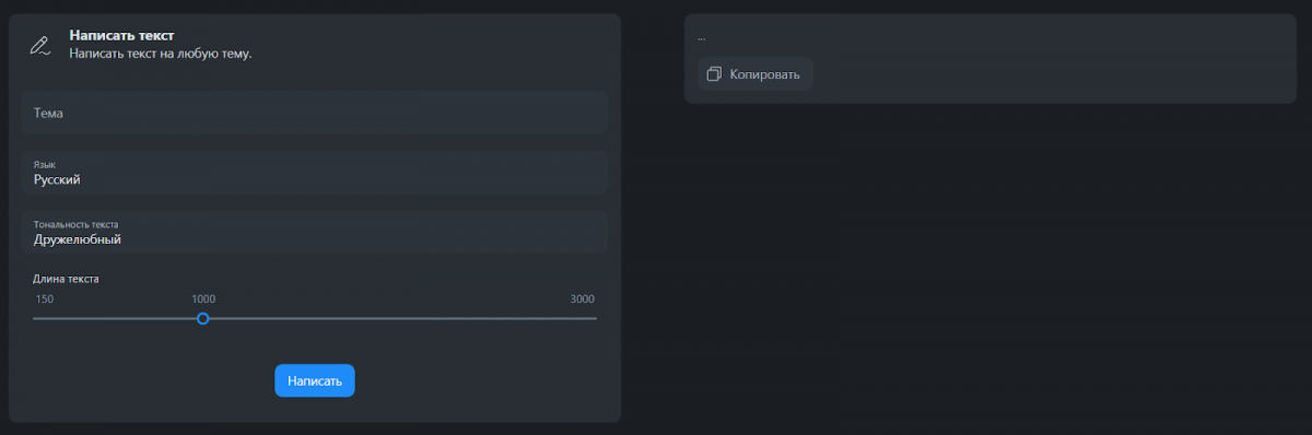 a slider "Text Length" – from 150 to 3000 characters (convenient for a post, carousel, or story text);