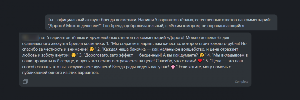 The most valuable aspect is that these capabilities cover 80–90% of the daily tasks of an SMM specialist or business owner. To get the most out of it, the right prompt is needed.