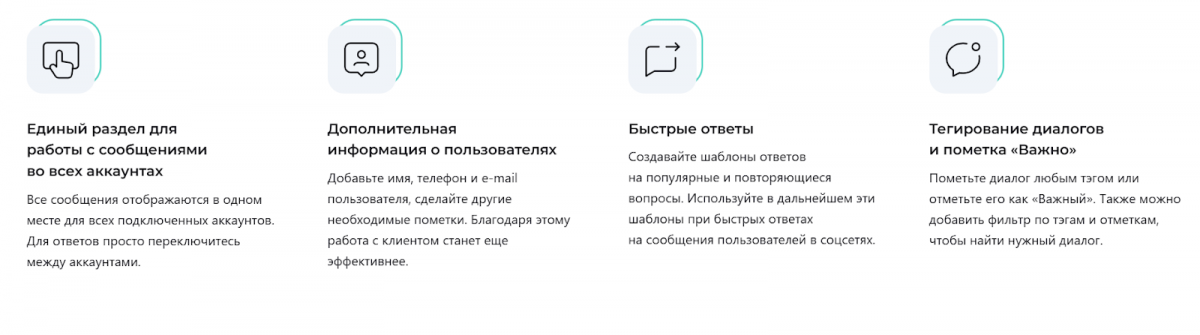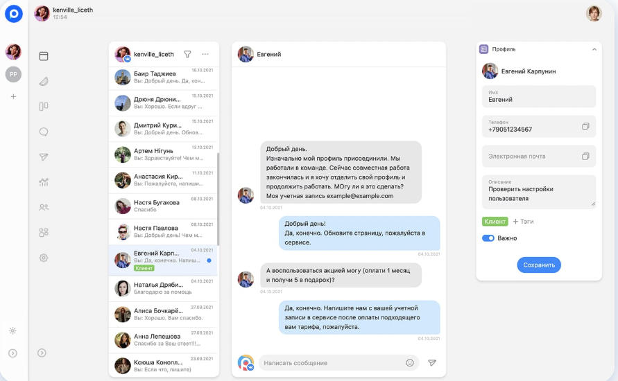 Imagine: all messages from Instagram*, VKontakte, Telegram, Facebook*, TikTok, and other channels come into one window. You can see: