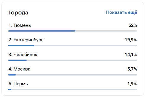 Sometimes it’s surprising to find that a significant portion of traffic comes not from Moscow, but from, for instance, Yekaterinburg or Krasnoyarsk. This is a reason to consider local campaigns: participating in city events, targeting specific regions. You might even adjust posting times — align with time zones.