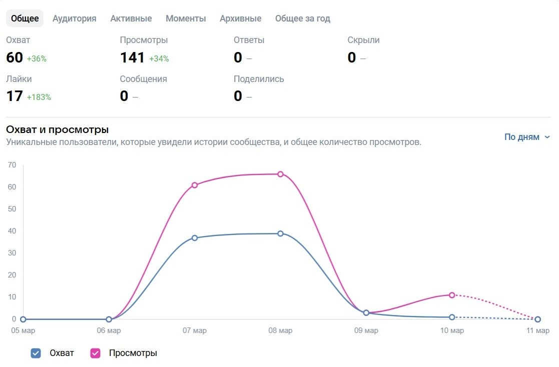 Stories also have statistics. You can see how many times they were viewed, how many people replied, shared, or hid them. The last metric is especially important: if many people hide stories, it means they are either too intrusive or not aligning with the audience's interests.