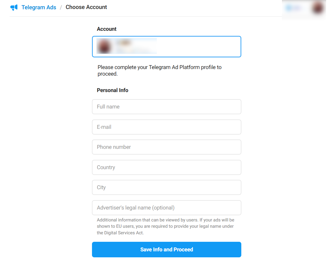 Setting up Telegram ads begins with registering in the dashboard. Go to ads.telegram.org or a reseller. Authorize in ads using your Telegram number. Choose a type: Personal (individual) or Organization (company). Fill in the ad details required by Telegram: name, email, phone, country. Provide a Telegram bot for communication.