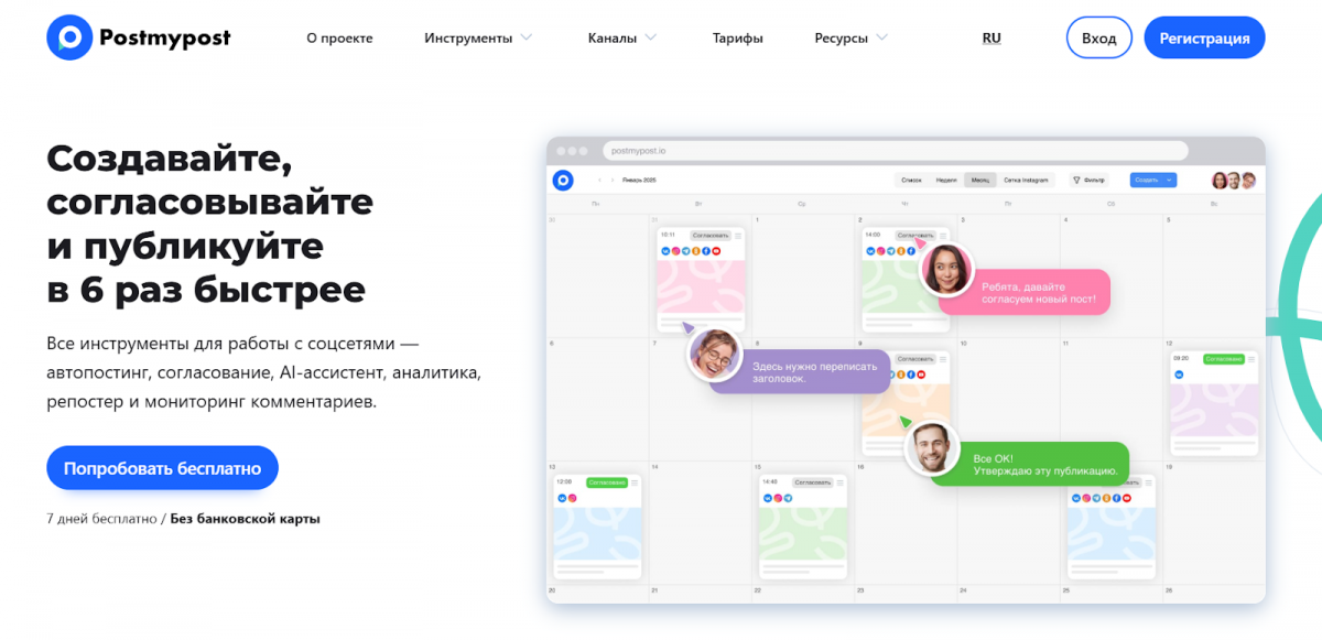 Здесь хорошо помогает специализированный сервис Postmypost. Платформа позволяет работать быстрее и эффективнее: