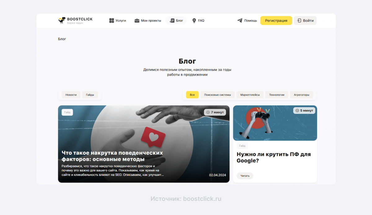 8. Boostclick. Биржа заданий с живыми исполнителями для накрутки ПФ сайтов, соцсетей и маркетплейсов.