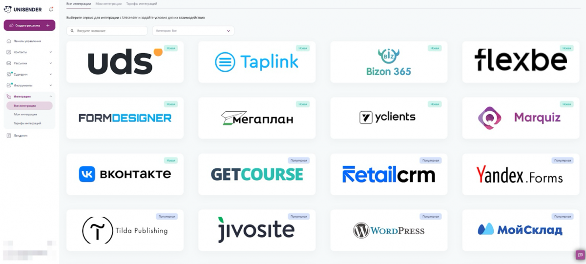 Отдельное преимущество Unisender — развитая экосистема интеграций. Сервис поддерживает более 50 готовых интеграций с CRM-системами, CMS, платформами для интернет-магазинов и сервисами аналитики. Это позволяет автоматизировать сбор подписчиков, синхронизировать данные о клиентах, передавать события и выстраивать email-рассылки на основе поведения пользователей. Такой подход особенно важен для e-commerce и бизнеса с большим количеством точек контакта.