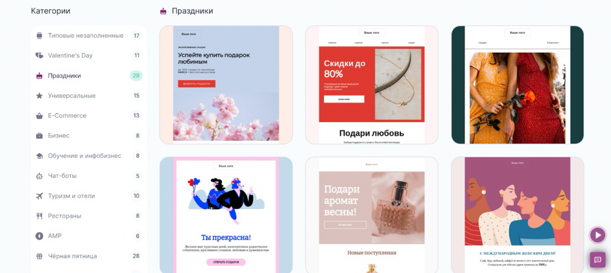 — готовые шаблоны писем для бизнеса и e-commerce;