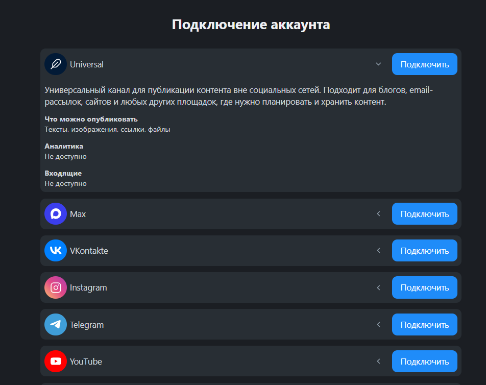 Подключайте Universal уже сегодня — и переводите весь контент-процесс в один удобный инструмент.